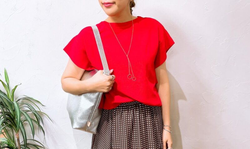 ドット柄スカートが可愛い◎