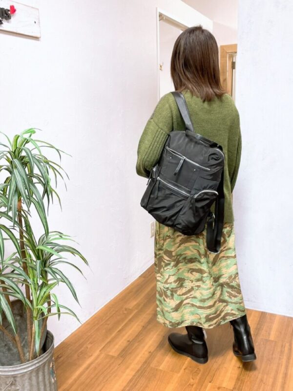 ブーツとバッグでメリハリをつけたオススメコーデ。
